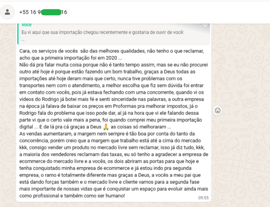 Hoje, ele segue crescendo e consolidando o negócio, ampliando as vendas e entrando em uma nova fase, mais estruturada e com espaço para evoluir ainda mais na sua jornada de importação, comprando produtos da China, com segurança, margem e de forma 100% legalizada, justamente porque recusou o atalho arriscado e escolheu fazer do jeito certo, com o Importação Digital.